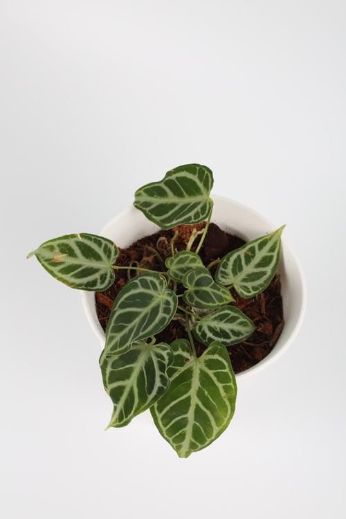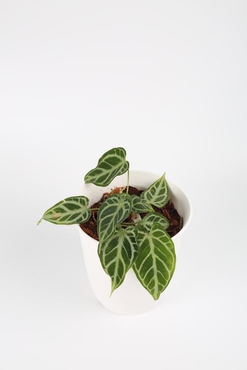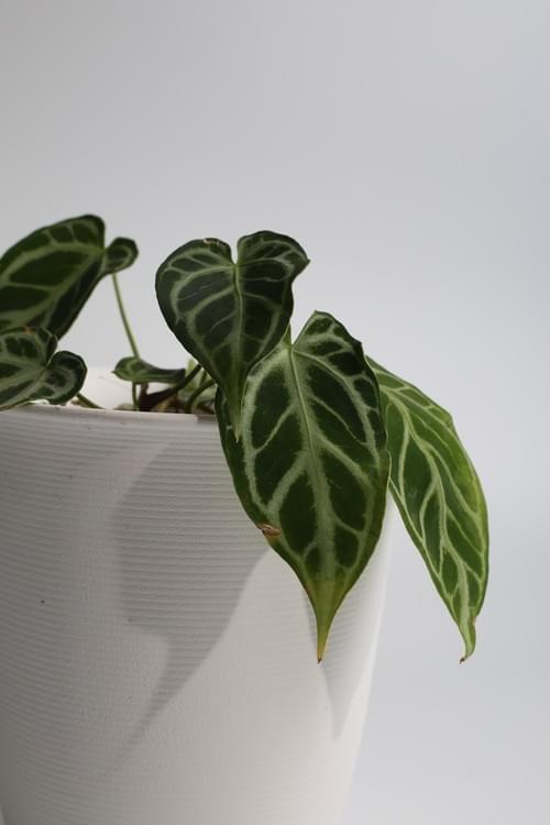 又稱明脈花燭葉,葉片呈心形且葉端尖,葉色濃綠搭配著顯著的白色葉脈;是個優雅的室內觀葉植物,更是居家潮流的植物之一。除了葉型美麗之外,因具有耐陰性極強的特性,屬於非常容易照顧的盆栽,是一種可以不費吹灰之力,就能輕鬆美化居家的葉片植物。