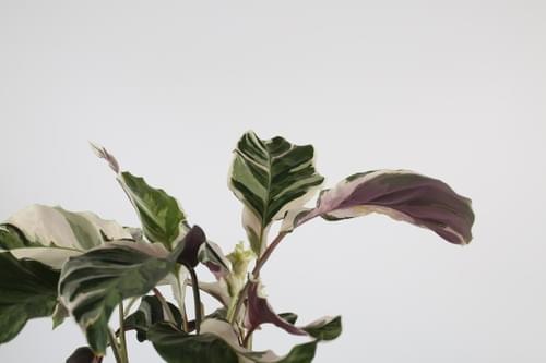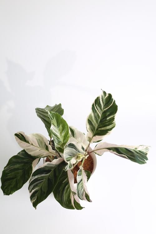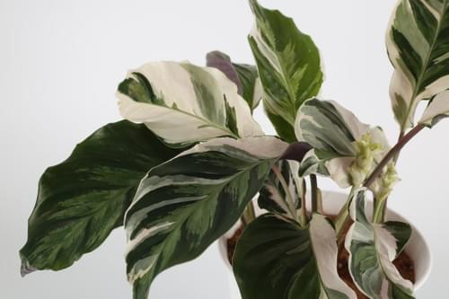 藝術氣息濃厚的一款竹芋,植栽如其名,遠看像一幅用畫筆勾勒出白色與綠色斑塊的油墨畫,有著自然的美感。就像是將不同色調的綠色與白色打翻在葉面上,葉背更是呈現出特別的淺紫色,這樣的色彩變化總會讓人忍不住想多看幾眼。